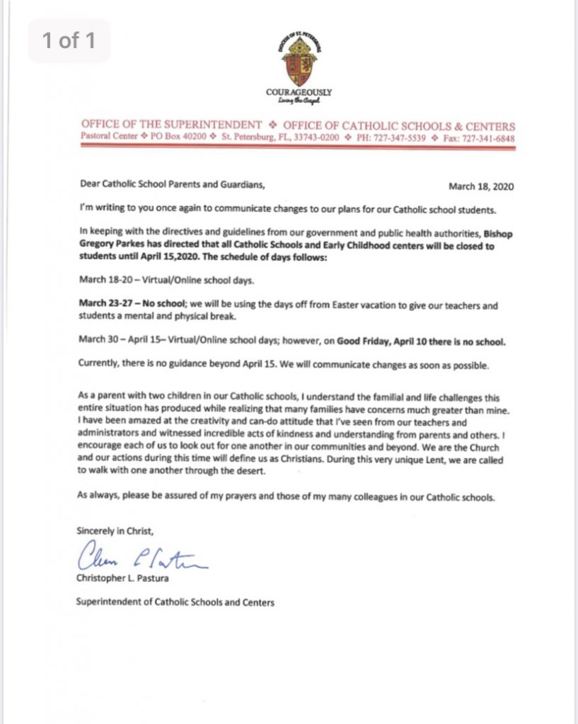 Diocese directs SHECC closure continues through April 15.